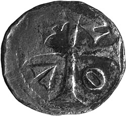 Keerzijde: Binnen een dubbele vierpas met ringen aan de binnenhoeken een kort gevoet kruis, in de buitenhoeken telkens twee ringetjes en in de kwartieren een F en een kroontje afwisselend.