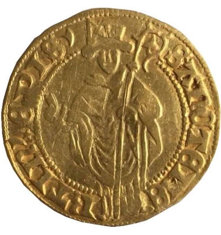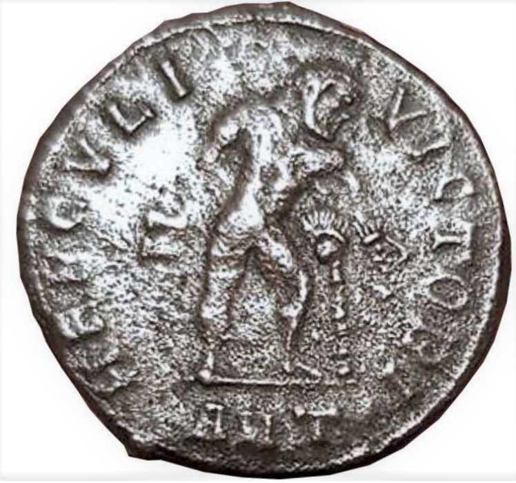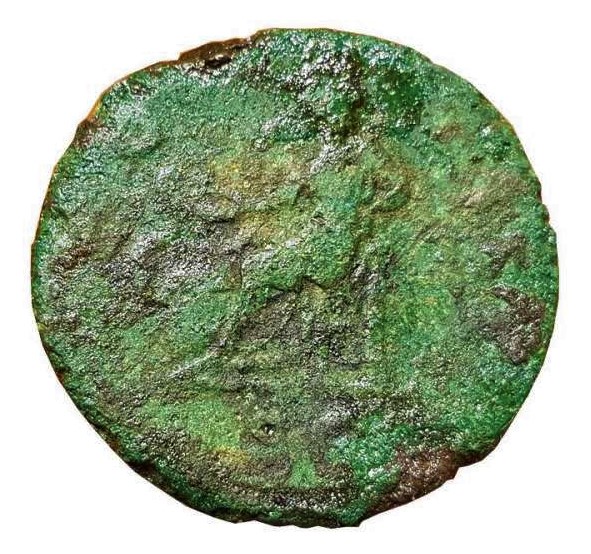 Keerzijde: Pax, staande naar links met in de rechterhand een tak en in de linkerhand een Hoorn des overvloeds: Tekst: PONT MAX TR POT COS II