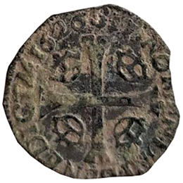Gepubliceerd inKoninkrijk Frankrijk: douzain, illegale uitgifte van de protestanten. Lodewijk XIII, koning van Frankrijk, 1610 – 1643 ( H )
