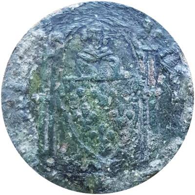 Gepubliceerd inRekenpenning Frankrijk, type ” Staande koning onder baldakijn met wapenschild “, Philippe de Valois of Jean le Bon, ca. 1350.