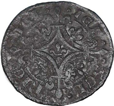 Gepubliceerd inRekenpenning Frankrijk, type ” Staande koning onder baldakijn “, Philippe de Valois of Jean le Bon, ca. 1328 – 1364.