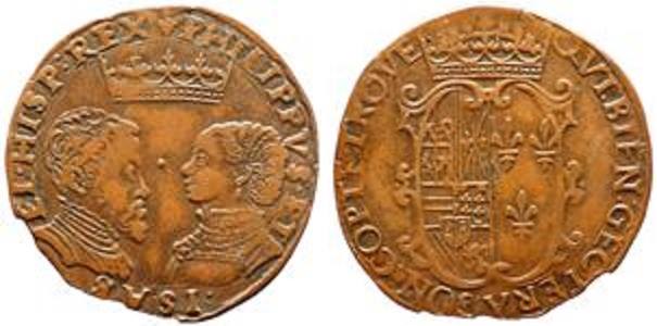 Gepubliceerd inRekenpenning Zuidelijke Nederlanden, ” Op het huwelijk van Philips II met Isabella van Valois “, Brugge, z.j. ca. 1559.