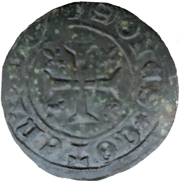 Gepubliceerd inRekenpennning Frankrijk, type IHS, “Autem Transiens serie”, Louis XII of Francois I, waarschijnlijk Tournai, ca. 1497 – 1521.