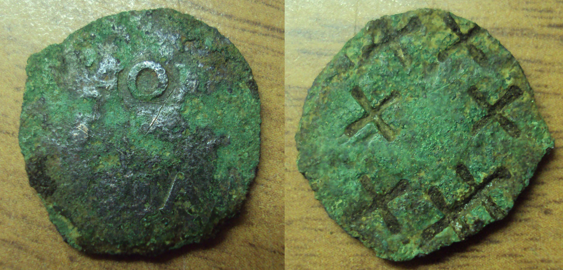 Recent is een vals duitje gevonden welke slechts 1,4 gram weegt. Een jaartal is niet te zien maar het zal waarschijnlijk een vervalsing zijn van dit zeer algemene type Hollandse duit zonder jaartal.