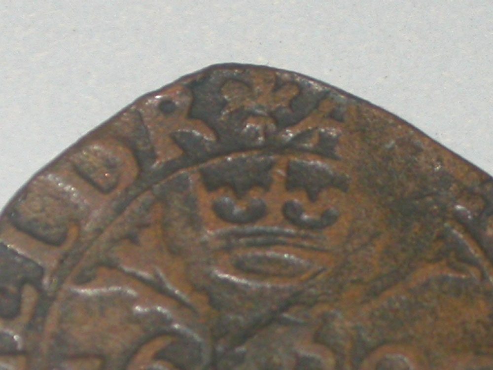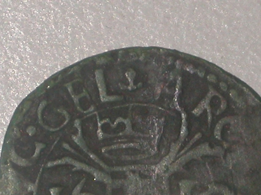 Voorzijde: Gekroond Spaans wapenschild van de aartshertogen, aan weerszijden van het wapenschild staat een punt en om het geheel loopt een gedeeltelijke binnen cirkel. Tekst: ALBERTVS. ET. ELISA. D:G (of variant). Voluit: Albertus et Elisabeth Dei gratia, en betekent: Albertus en Elisabeth, bij Gods gratie (vervolg op de keerzijde).