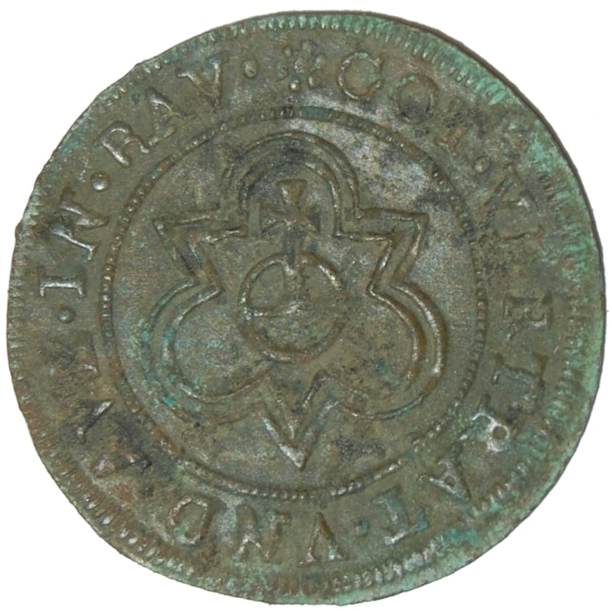Gepubliceerd inRekenpenning Neurenberg, type Rijksappel/roosje met zinspreuk “Gott vertraut und auf ihn baut”, Wolf Lauffer II, ca. 1612-1651.