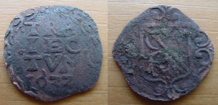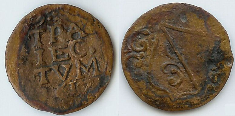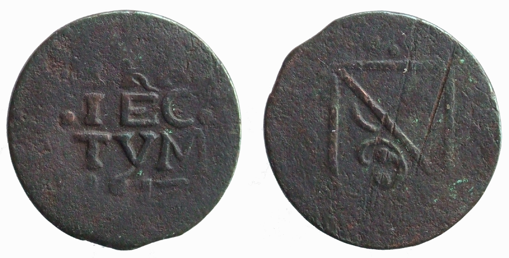 Voorzijde: Een tulpkrans met daarin de tekst TRA IEC TVM in 3 regels en daaronder het jaartal 1625