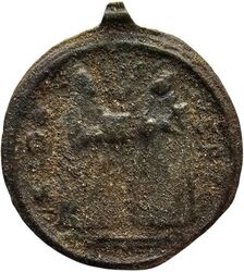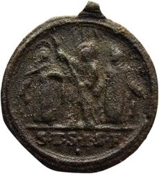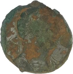 Keerzijde: Hadrianus in militair uniform te paard, met opgeheven rechterhand, galopperend naar links. Tekst: IMP CAESAR TRAIAN HADRIANVS AVG, in het veld S / C en in de afsnede EXPED AVG